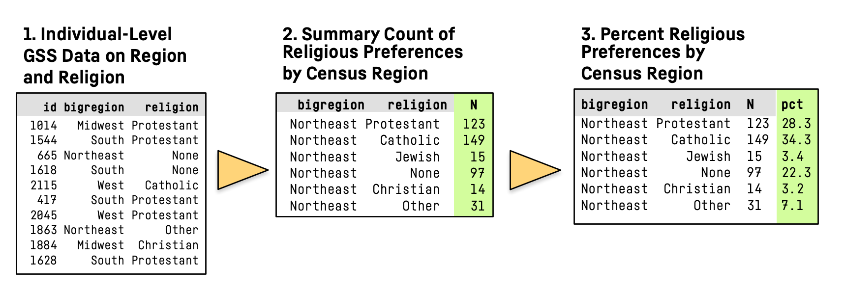 bigregion religion total freq pct