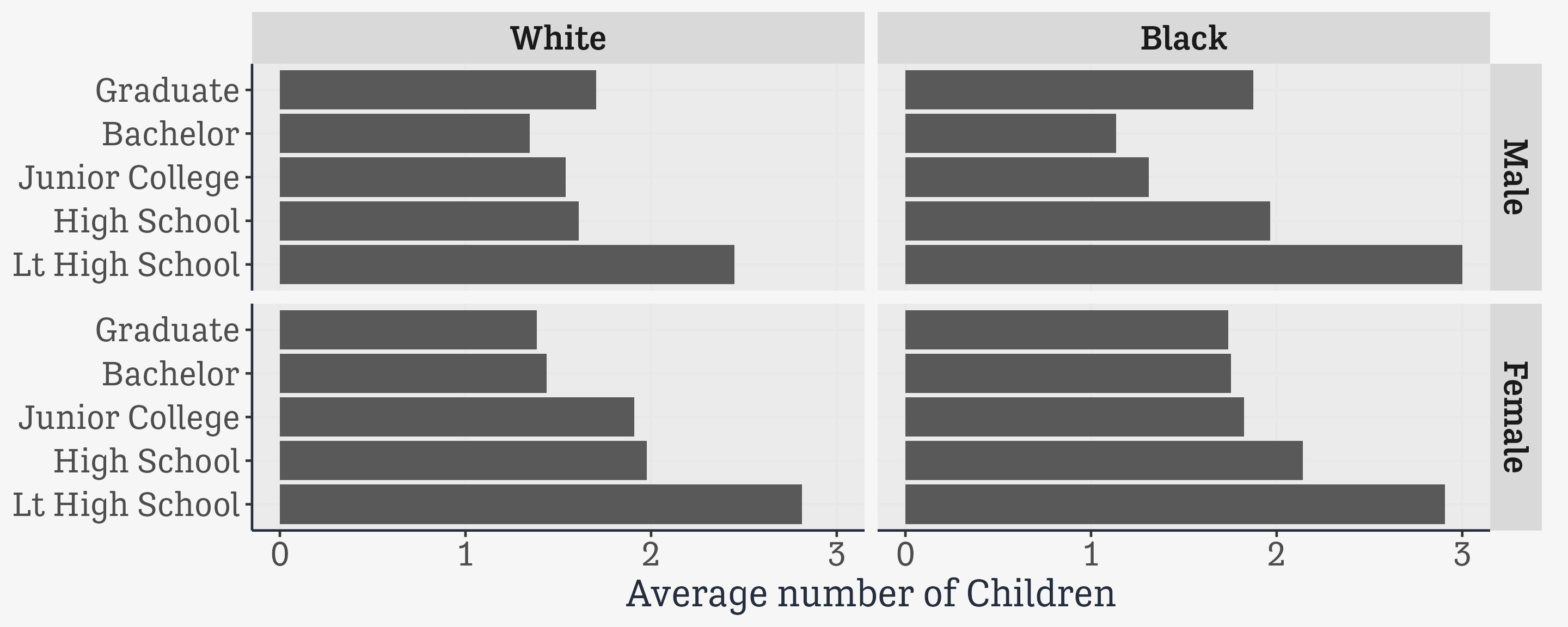 Group the data at the level we want, such as “By Race”, or “By Country”, or “By Religion within Regions” or “By Grade within Schools”.